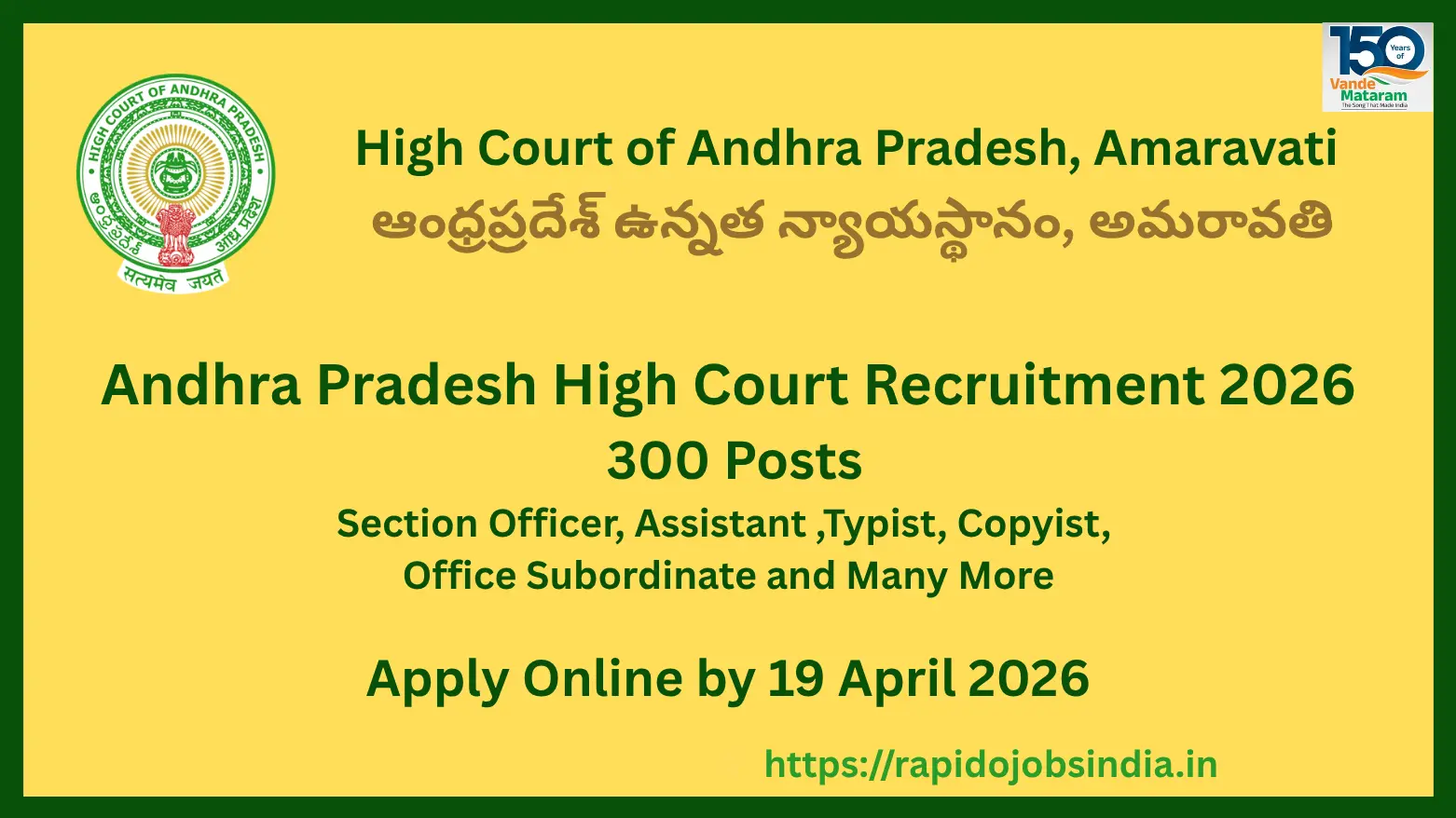 AP High Court Recruitment 2026 – 300 Posts, Apply Online, Last date 19 April 2026
