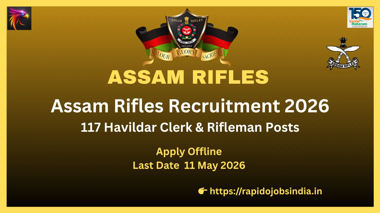 The offline application must reach the Directorate General Assam Rifles by 11 May 2026.