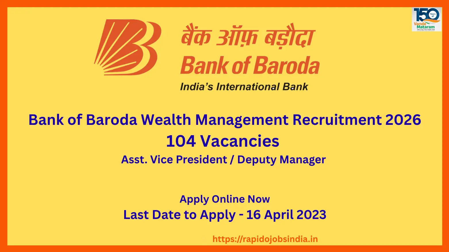 Bank of Baroda Wealth Management Recruitment 2026 – 104 Vacancies Apply Online Last date 16 April 2026
