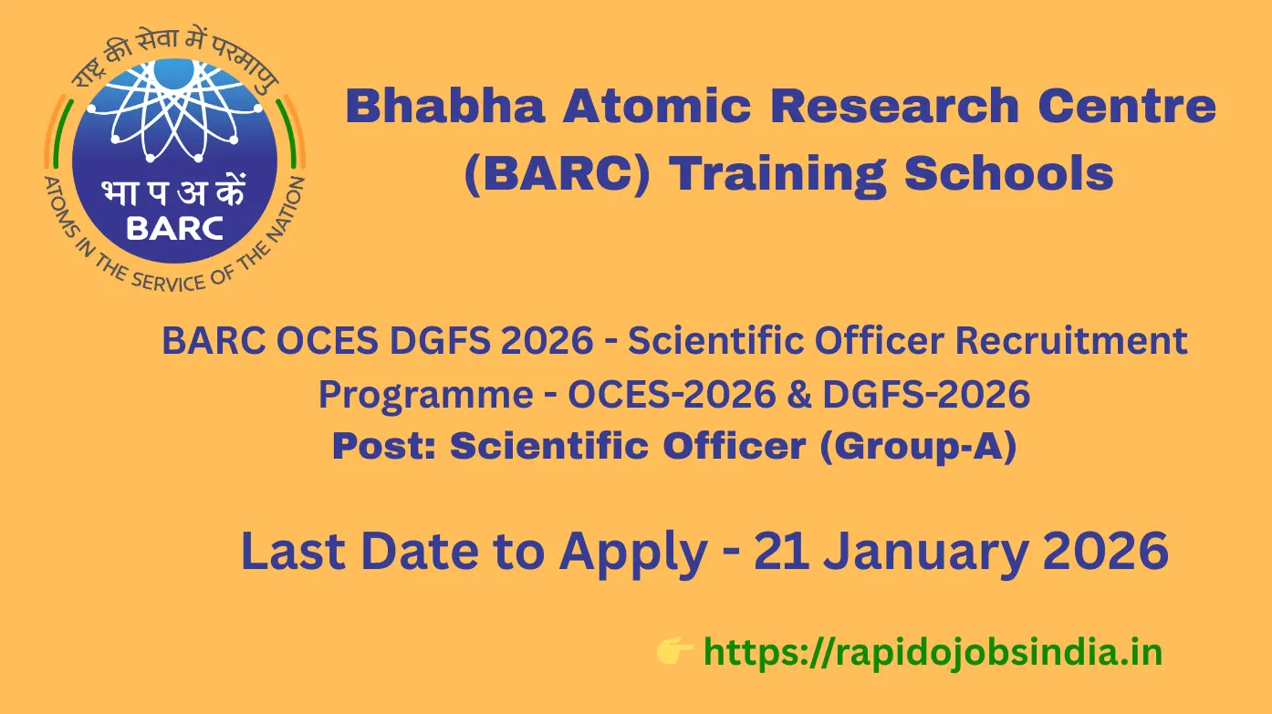 BARC OCES DGFS 2026 – Scientific Officer Recruitment for Scientific Officer Vacancies, Last Date 21 Jan 26