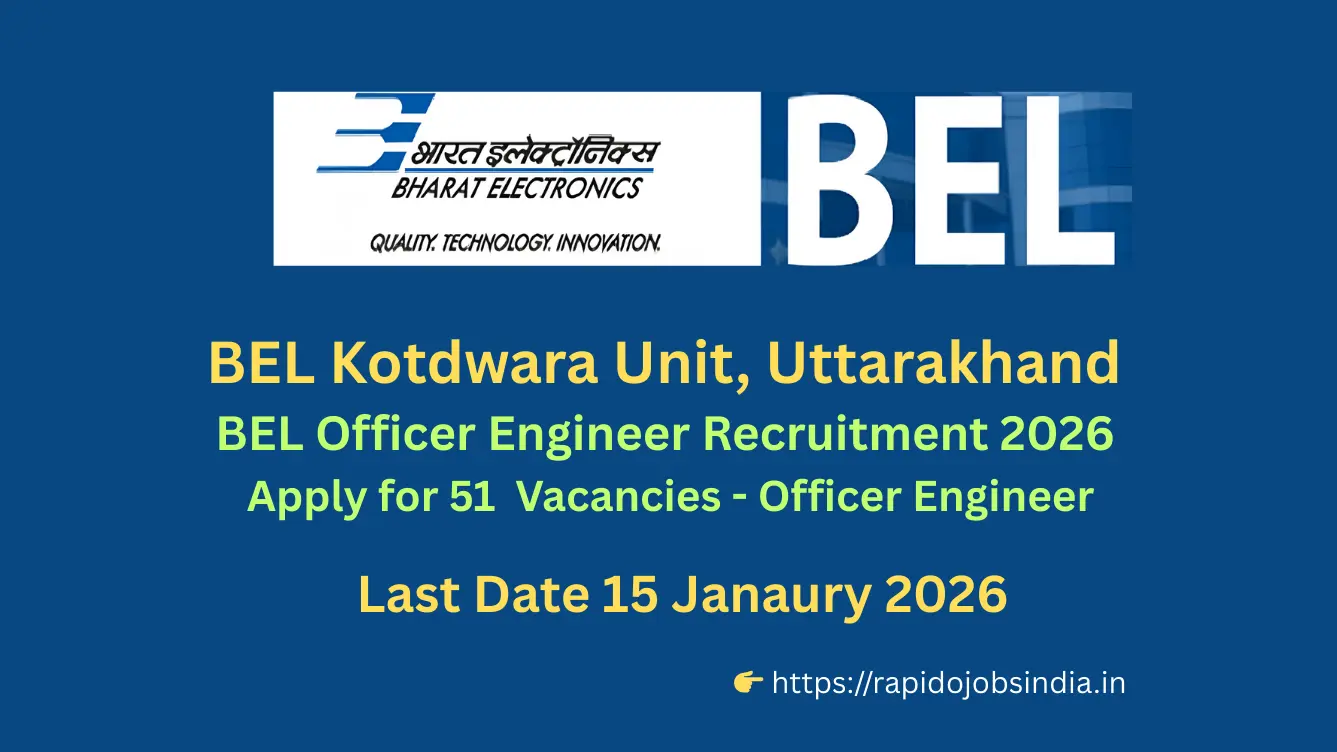 BEL Kotdwara invites applications for 51 Trainee Engineer/Officer posts. Pre-register online by 15 Jan 2026. Walk-in selections at Kotdwara.