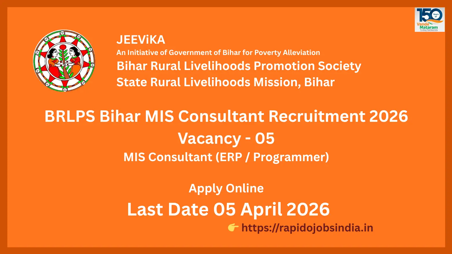 The Bihar Rural Livelihoods Promotion Society (BRLPS), popularly known as JEEViKA, has announced the recruitment of MIS Consultants for the year 2026. This initiative aims to strengthen digital systems and improve operational efficiency across rural livelihood programs in Bihar. A total of five vacancies are available, including positions for MIS Consultant (ERP) and MIS Consultant (Programmer).