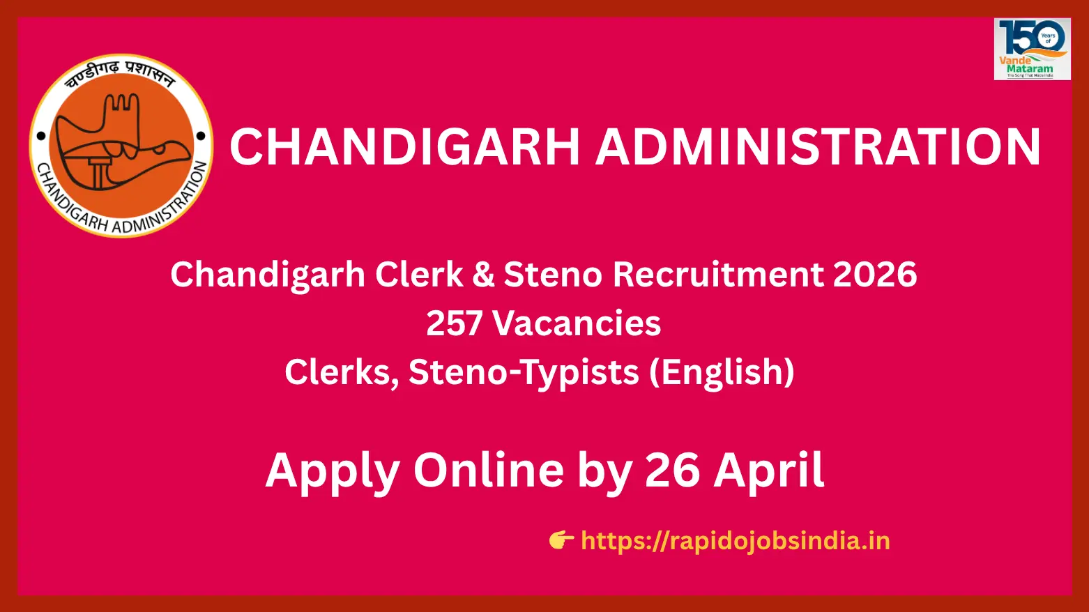 • Chandigarh Clerk Steno Recruitment 2026– 257 Vacancies Apply Online by 26 April 2026