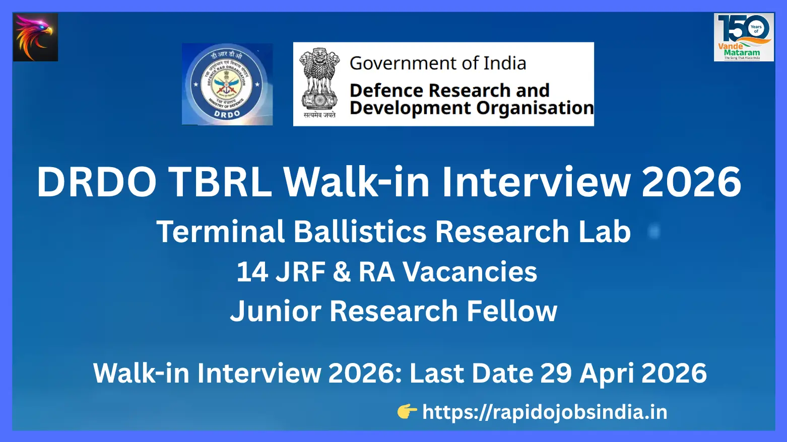 • Vacancy Details – DRDO TBRL Terminal Ballistics Research Lab Walk-in Interview 2026