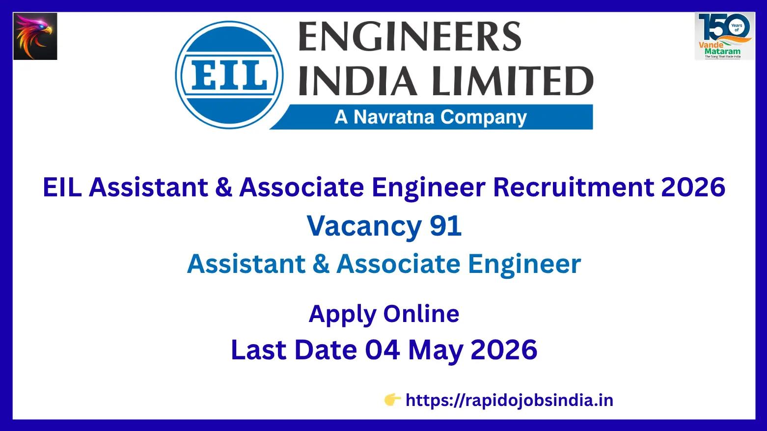 • EIL Assistant & Associate Engineer Recruitment 2026 – 91 Vacancies Apply Online by 04 May 2026