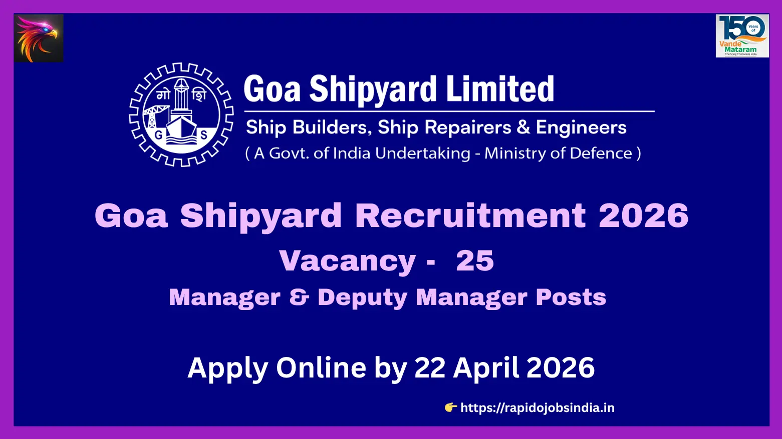 Goa Shipyard Limited (GSL), a premier Defence Public Sector Undertaking under the Ministry of Defence, has announced its 2026 recruitment drive. The organization is inviting talented professionals to apply for 25 Manager and Deputy Manager positions across multiple technical disciplines. These roles are offered on a fixed-term employment basis, initially for three years and extendable up to two years, providing candidates with a unique opportunity to contribute to India’s naval shipbuilding projects.