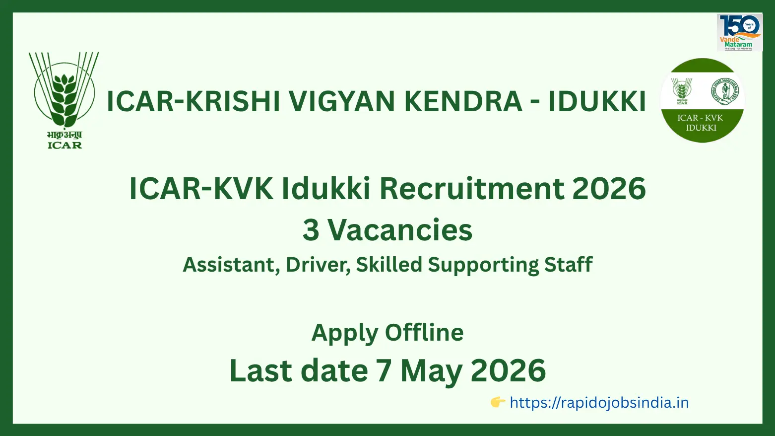 • ICAR KVK Idukki Recruitment 2026 – 3 Vacancies Apply Offline last date 7 May 2026
