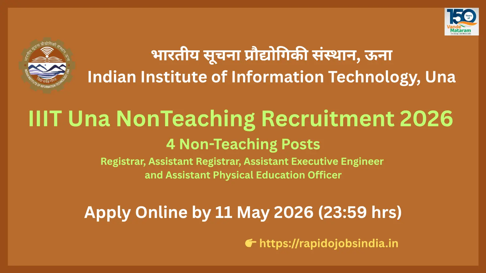 IIIT Una NonTeaching Recruitment 2026 – Registrar, AR, AEE, APEO – Apply Online by 11 May 2026