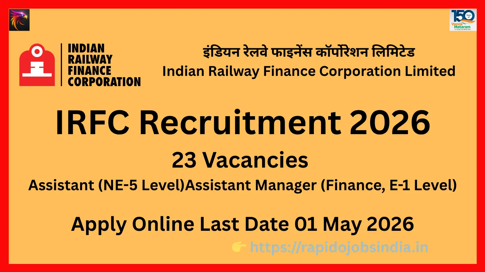 Indian Railway Finance Corporation Limited (IRFC), a Navratna Public Sector Undertaking under the Ministry of Railways, has announced its 2026 recruitment drive. The notification invites online applications for 23 vacancies across Assistant (NE-5) and Assistant Manager (Finance, E-1) positions. This recruitment offers candidates a chance to join a premier financial institution supporting India’s railway infrastructure projects.