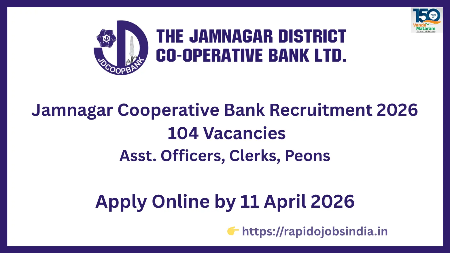 The Jamnagar District Co-operative Bank Ltd. has officially announced its 2026 recruitment drive, offering a total of 104 vacancies across diverse roles including Assistant Officers in IT, Compliance, Treasury, Statistics, as well as Clerks and Peons. This recruitment provides an excellent opportunity for graduates and qualified professionals to secure positions in the cooperative banking sector.
