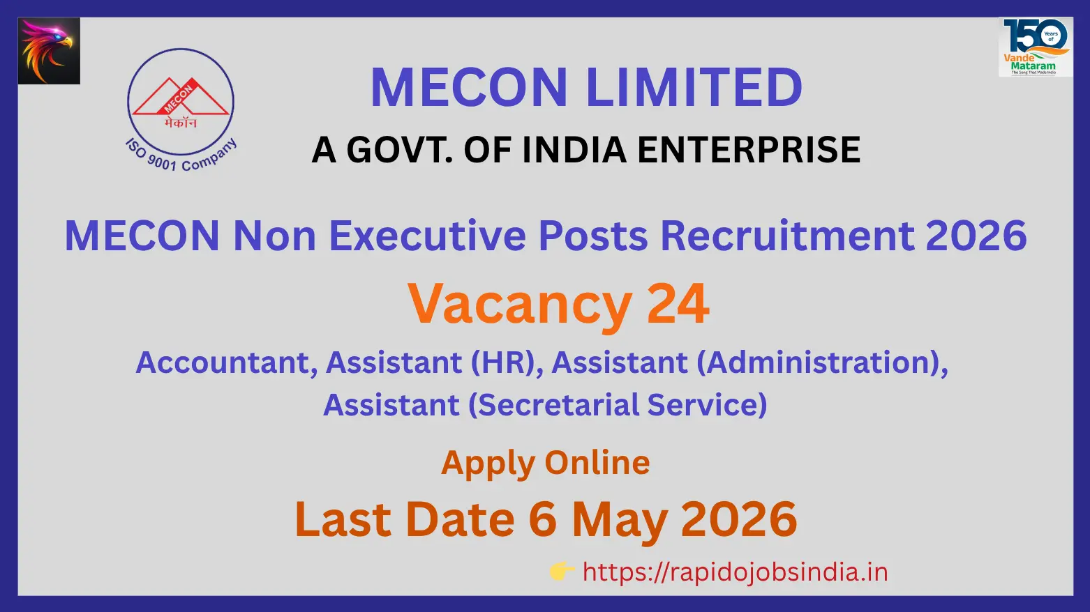 • MECON Non Executive Posts Recruitment 2026 – 24 Non-Executive Posts Apply Online by 6 May 2026