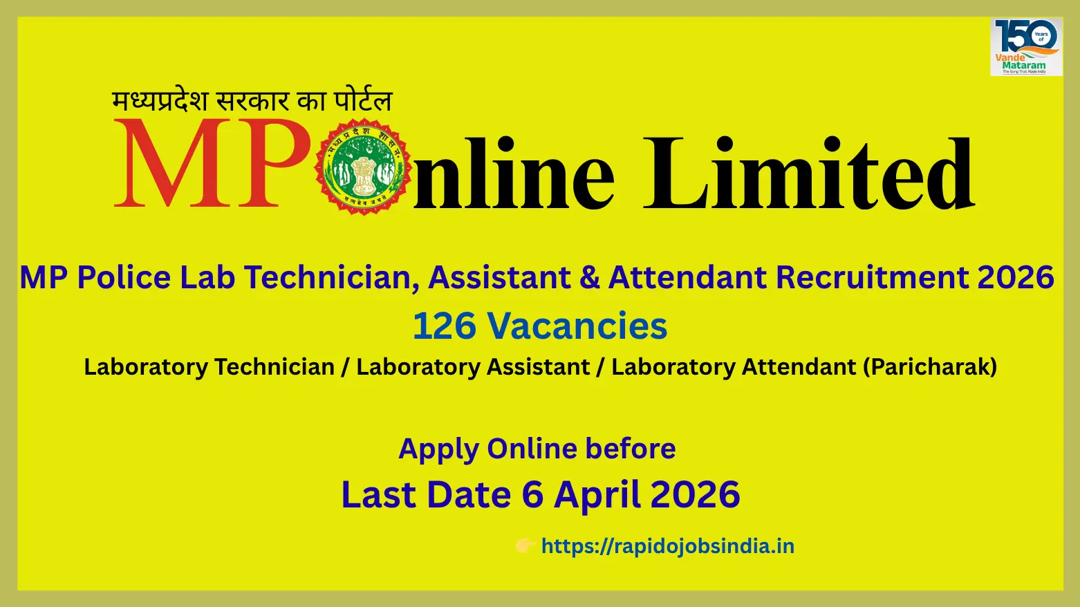 The Madhya Pradesh Police Department has officially announced recruitment for Lab Technician, Lab Assistant, and Lab Attendant positions under the prestigious Forensic Science Laboratory. This recruitment drive offers a total of 126 vacancies, providing an excellent opportunity for candidates seeking stable government employment in the scientific and technical field. Eligible applicants are encouraged to apply online before the closing date of 6 April 2026.