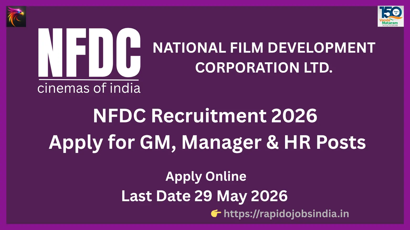 Interview details will be published on NFDC’s official website in the Careers section.