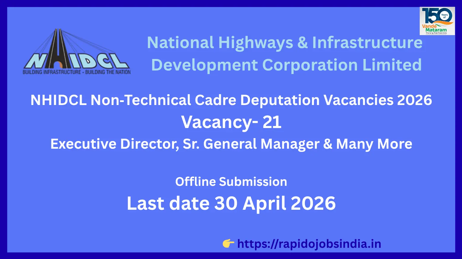 | Recruiting Body | National Highways & Infrastructure Development Corporation Limited (NHIDCL), Ministry of Road Transport & Highways, Govt of India |