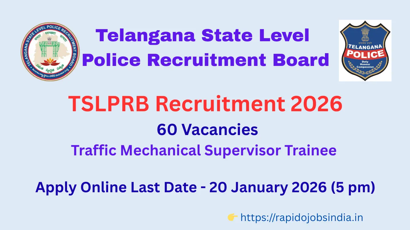 TSLPRB Recruitment 2026: 60 Traffic Mechanical Supervisor Trainee Vacancies