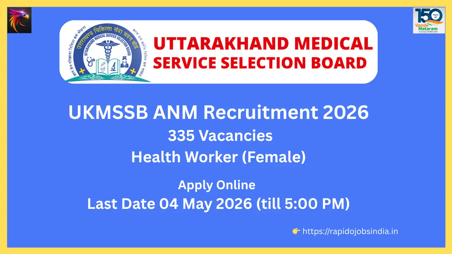 It is a recruitment drive by Uttarakhand Medical Service Selection Board for 335 ANM (Health Worker – Female) posts.