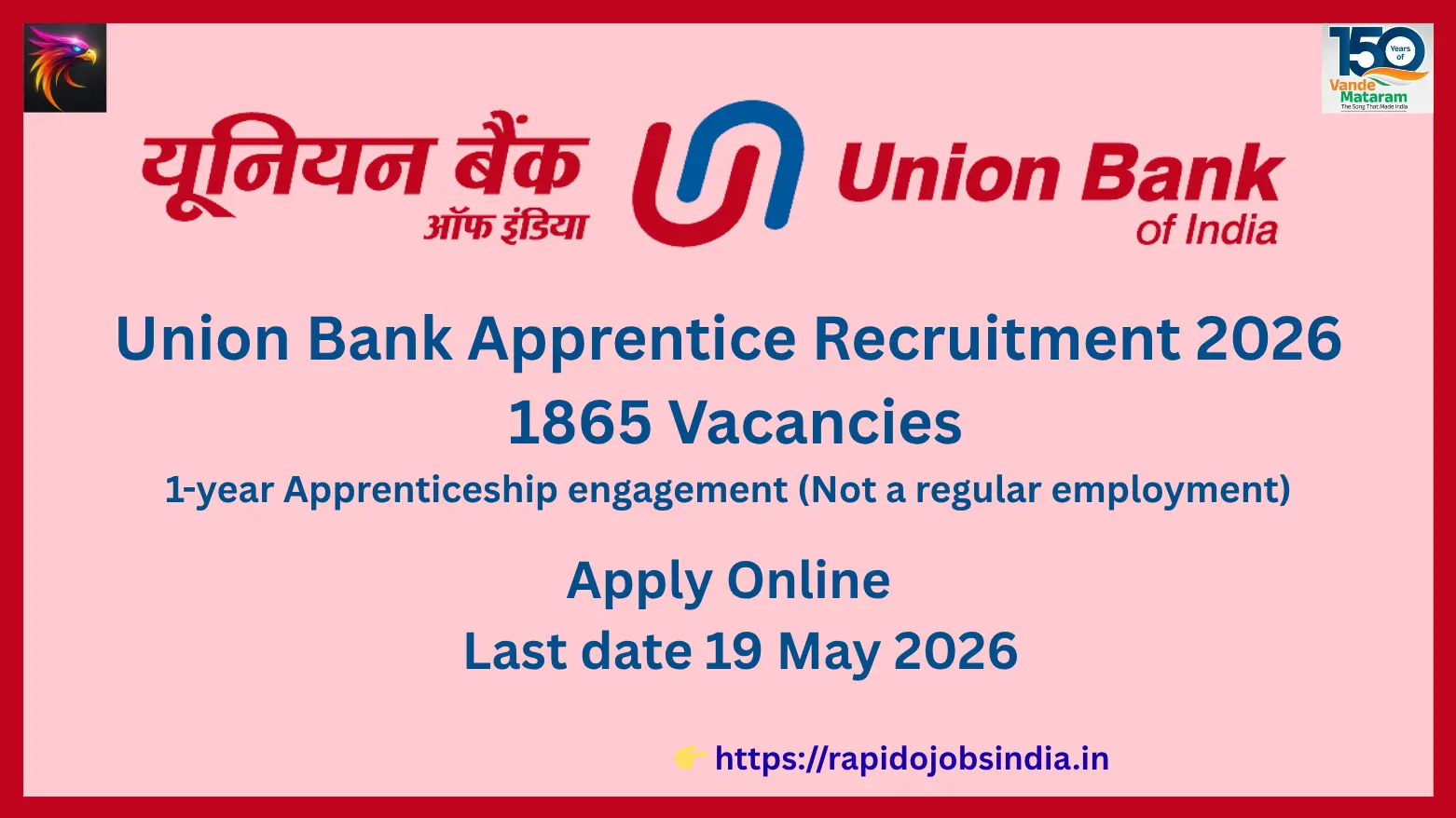 • Union Bank Apprentice Recruitment 2026 – 1865 Vacancies Apply Online by 19 May 2026