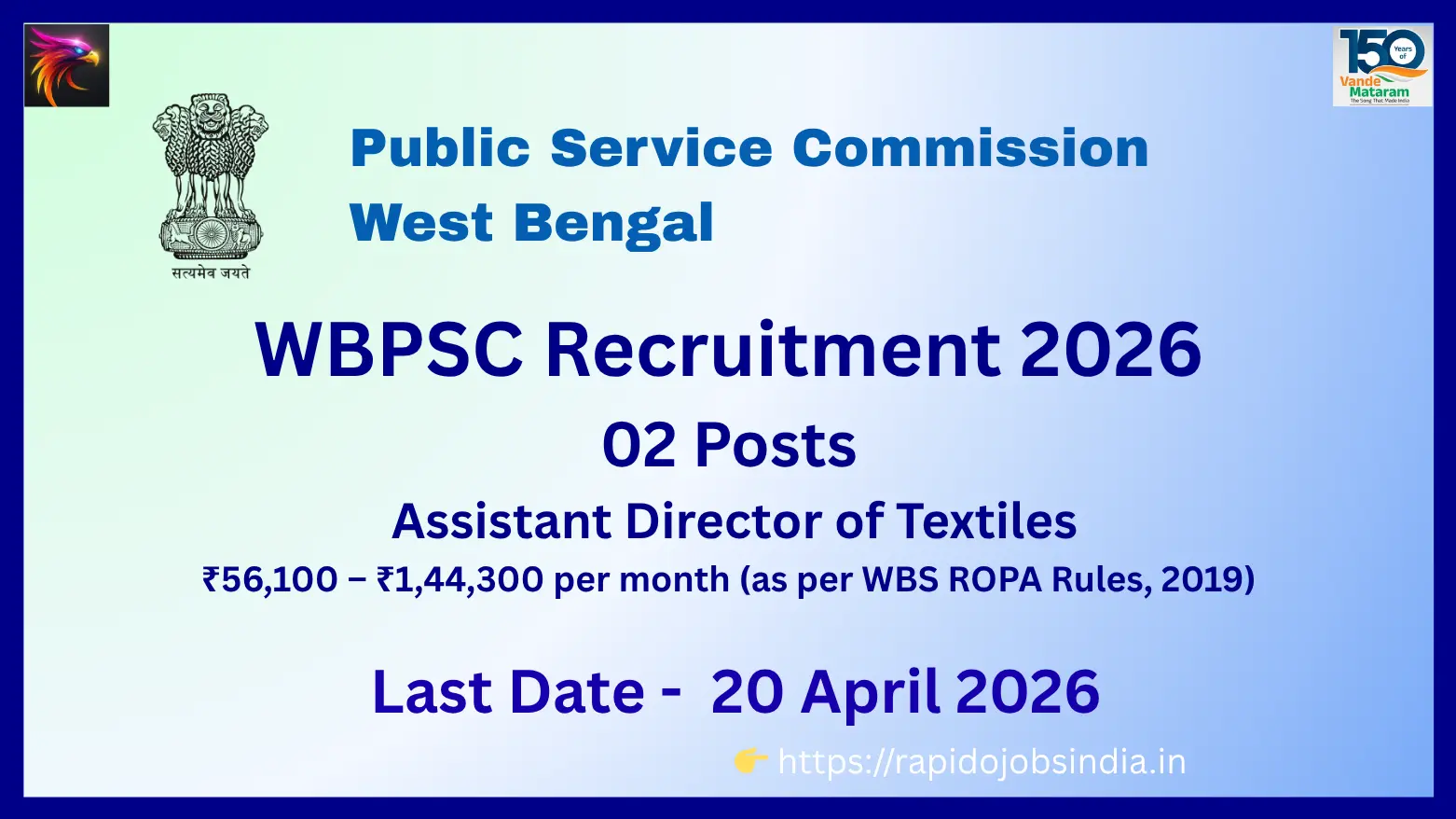 • WBPSC Recruitment 2026: Apply for Assistant Director of Textiles – Last Date 20 April 2026